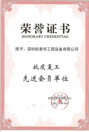 年全國無機(jī)鹽信息中心表彰了一批在新冠抗疫期間做出了突出貢獻(xiàn)的企業(yè),深圳歐泰華工程設(shè)備有限公司榮獲抗疫復(fù)工先進(jìn)會(huì)員單位。