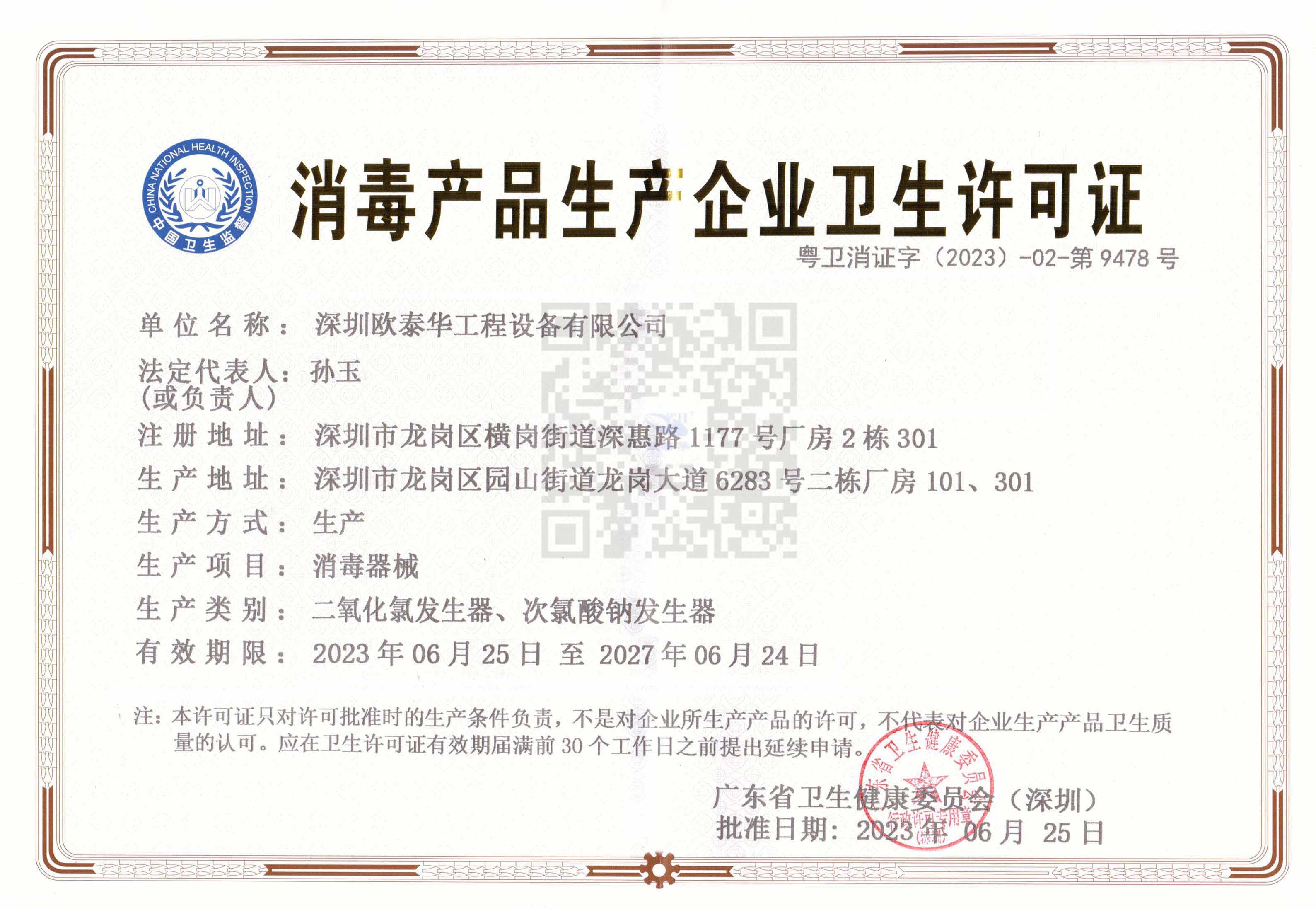 深圳歐泰華自主研發(fā)生產(chǎn)的消毒器械(二氧化氯發(fā)生器、次氯酸鈉發(fā)生器)廣泛應(yīng)用于自來水、市政污水、工業(yè)廢水等多個(gè)領(lǐng)域,擁有客戶數(shù)萬家。