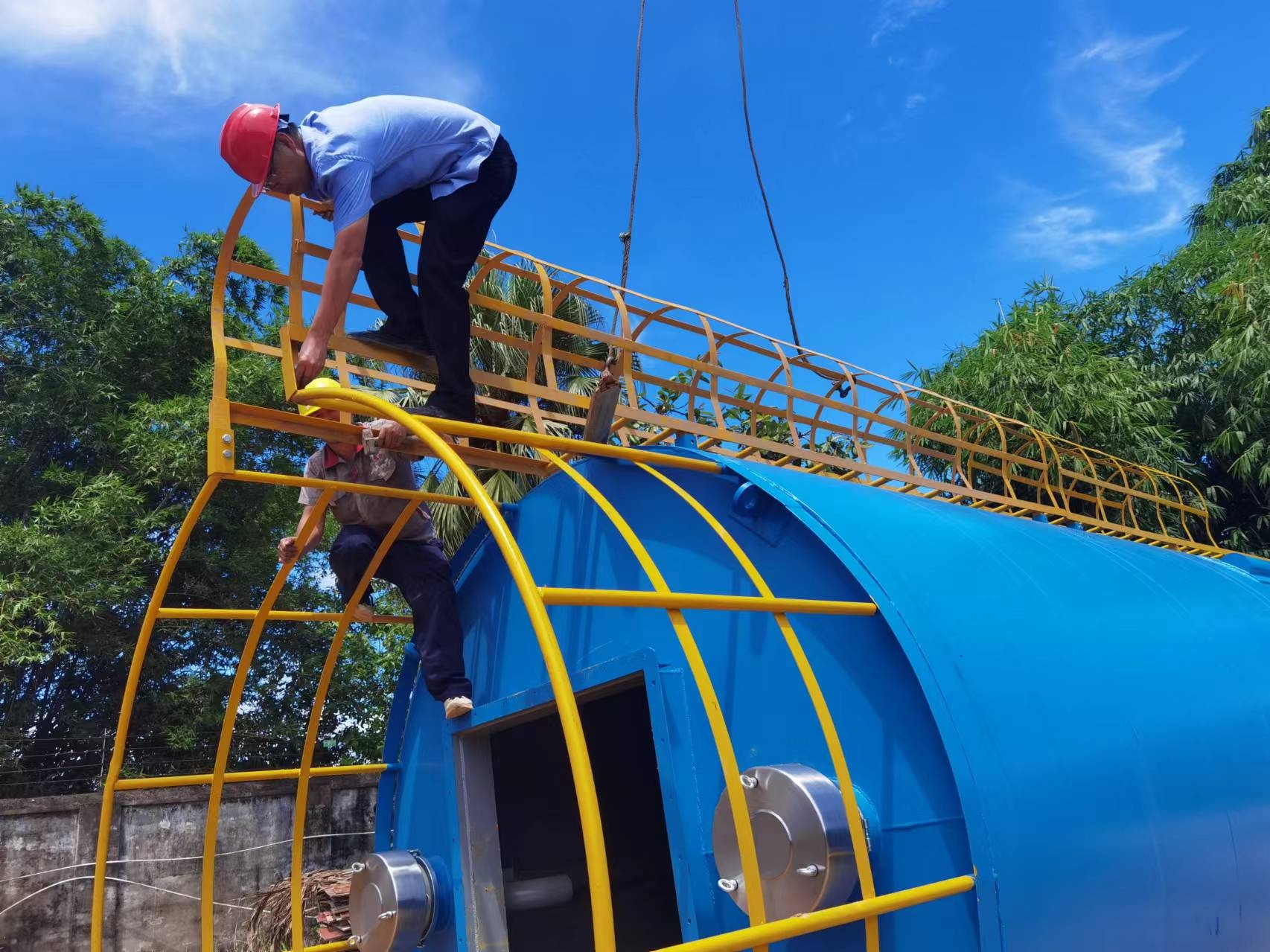 在海南儋州自來水有限公司的加氯加藥設備項目現場,歐泰華技術團隊正緊鑼密鼓地進行著活性炭投加裝置的料倉精準定位與安裝作業。面對當地高達38攝氏度的極端高溫,以及缺乏水電資源的艱苦環境,團隊連續奮戰一個月,展現了非凡的毅力與決心。期間,兩批技術精湛的服務團隊接力上陣,他們不畏艱難,逐一克服挑戰,確保了項目按既定計劃穩步推進。截至目前,綜合車間的安裝工作已接近尾聲,團隊正夜以繼日地投入到應急取水泵房加藥設備的安裝,力求每一個細節都盡善盡美。