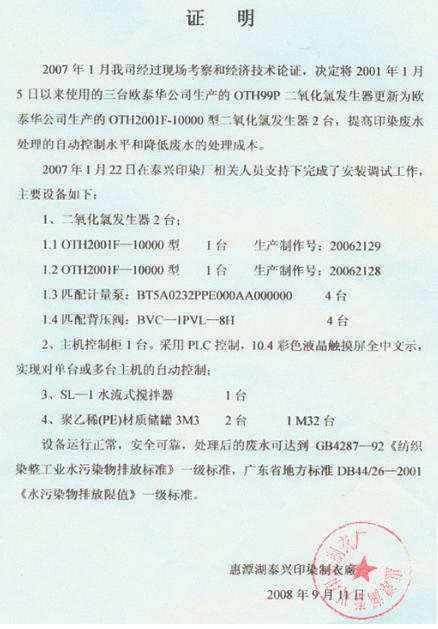 惠潭湖泰興印染制衣廠-應用證明