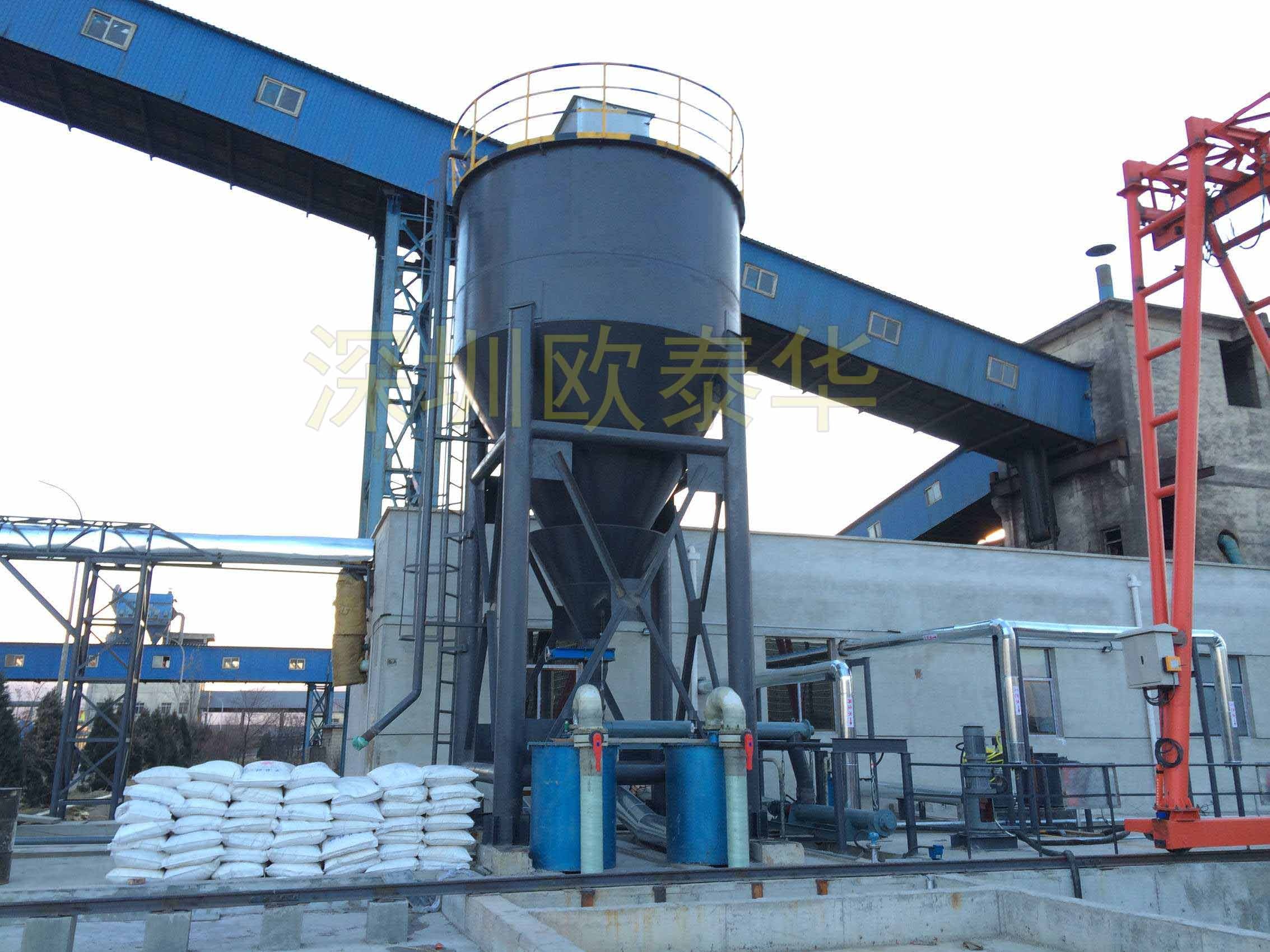 由石灰/活性炭投加裝置由料倉、給料機、螺旋輸送機、溶藥罐、攪拌機、螺桿泵、控制柜組成。